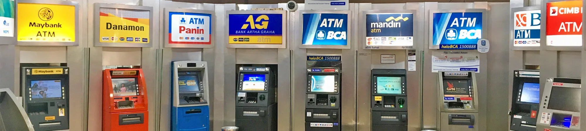 - BCA (Bank Central Asia): Von diesen blauen Geldautomaten gibt es sehr viele im ganzen Land, auch in kleineren Städten und selbstverständlich in touristischen Gebieten. Dank der optionalen Sprachumstellung auf Englisch ist das Abheben sehr einfach.