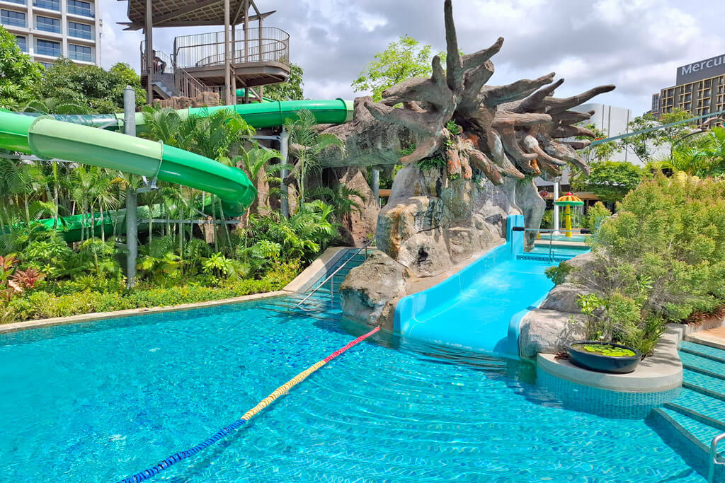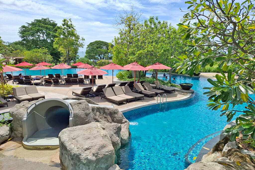 Das Amari Pattaya liegt in einem ruhigen Teil von Pattaya Beach und bietet helle, moderne Zimmer. Das Frühstücksbuffet ist sehr gut und wenn du woanders essen gehen möchtest, bist du von hier aus auch schnell im Zentrum. Der Poolbereich ist einfach unglaublich schön und bietet Spaß für die ganze Familie. Es gibt mehrere Rutschen, einen Wasserpark für Kinder, genug Platz zum Bahnen schwimmen und auch für ausreichend Schatten ist rund um die Anlage gesorgt. Außerdem kannst du schon ab sieben Uhr morgens ins Wasser und es gibt viele Bademeister, die sich um die Sicherheit der Gäste kümmern.